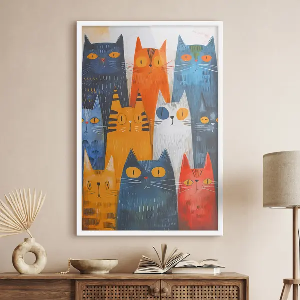 Poster Gatti colorati si riuniscono felicemente Nr f37559