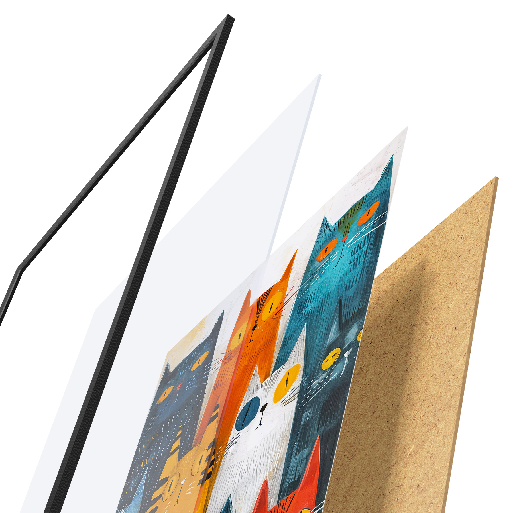 Il poster è composto da cornice, plexiglass, immagine stampata e supporto in truciolato. Il poster può essere immediatamente appeso alla parete grazie ai supporti sul retro.