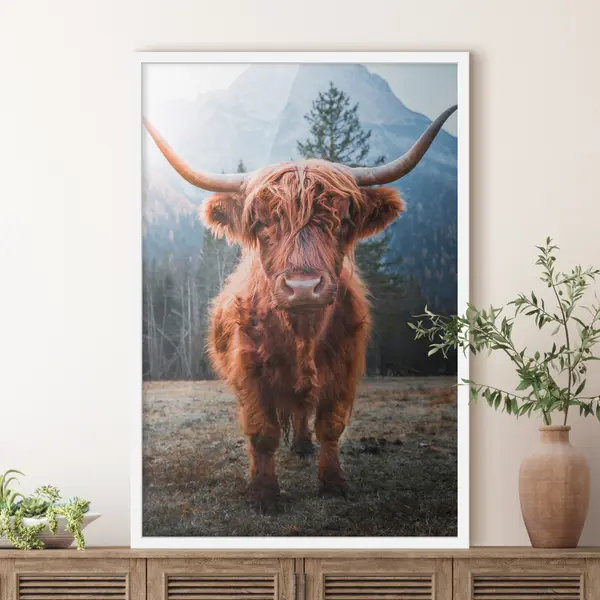 Poster Maestosa mucca di montagna nella natura f37629