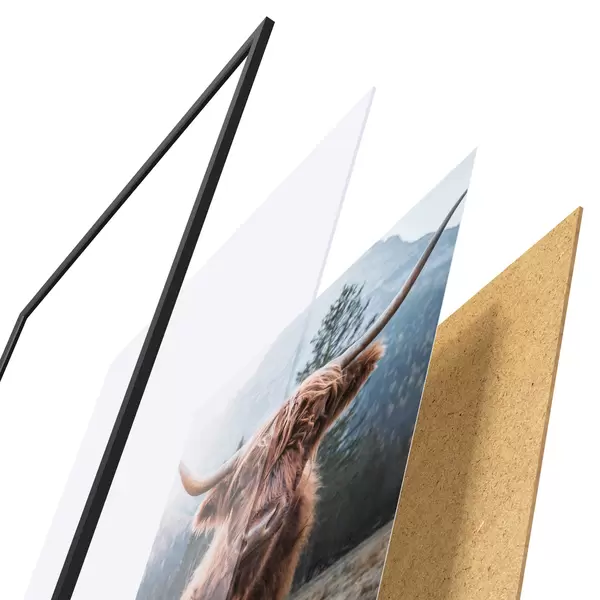 Il poster è composto da cornice, plexiglass, immagine stampata e supporto in truciolato. Il poster può essere immediatamente appeso alla parete grazie ai supporti sul retro.
