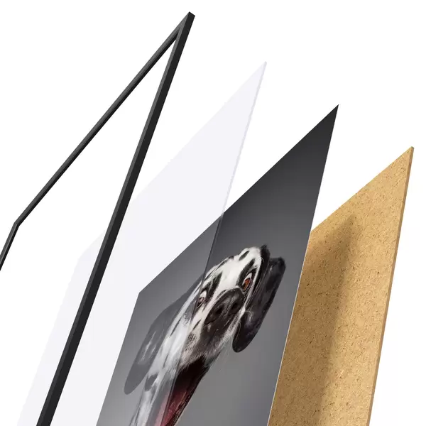 Il poster è composto da cornice, plexiglass, immagine stampata e supporto in truciolato. Il poster può essere immediatamente appeso alla parete grazie ai supporti sul retro.