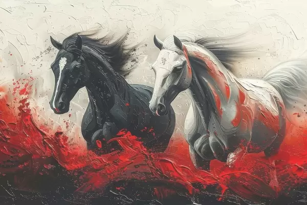 Poster Immagine di cavalli in corsa con vernice rossa Nr f37769