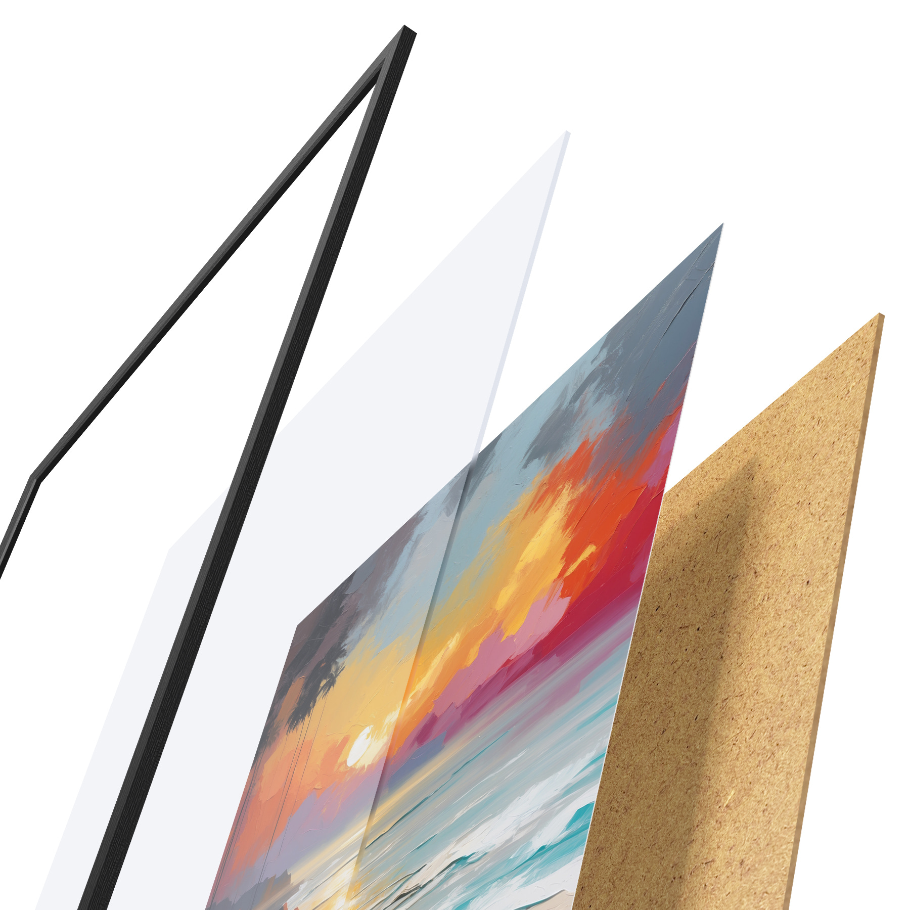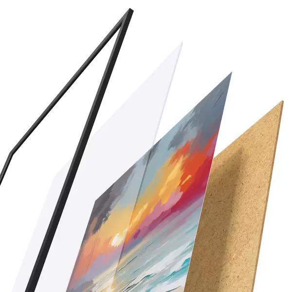 Il poster è composto da cornice, plexiglass, immagine stampata e supporto in truciolato. Il poster può essere immediatamente appeso alla parete grazie ai supporti sul retro.