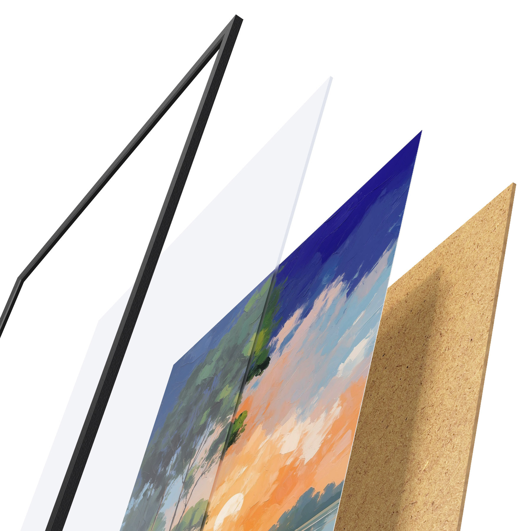 Il poster è composto da cornice, plexiglass, immagine stampata e supporto in truciolato. Il poster può essere immediatamente appeso alla parete grazie ai supporti sul retro.