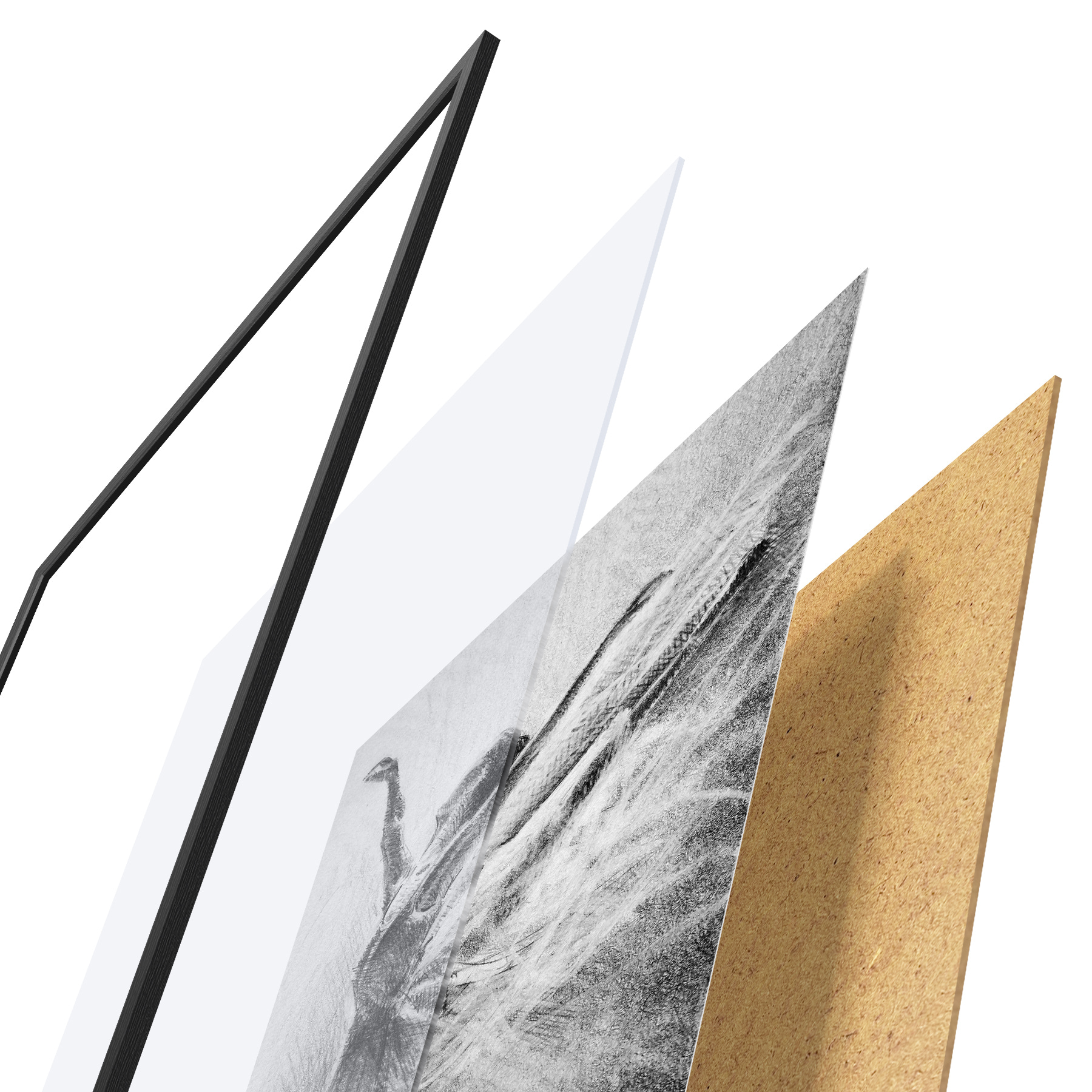 Il poster è composto da cornice, plexiglass, immagine stampata e supporto in truciolato. Il poster può essere immediatamente appeso alla parete grazie ai supporti sul retro.