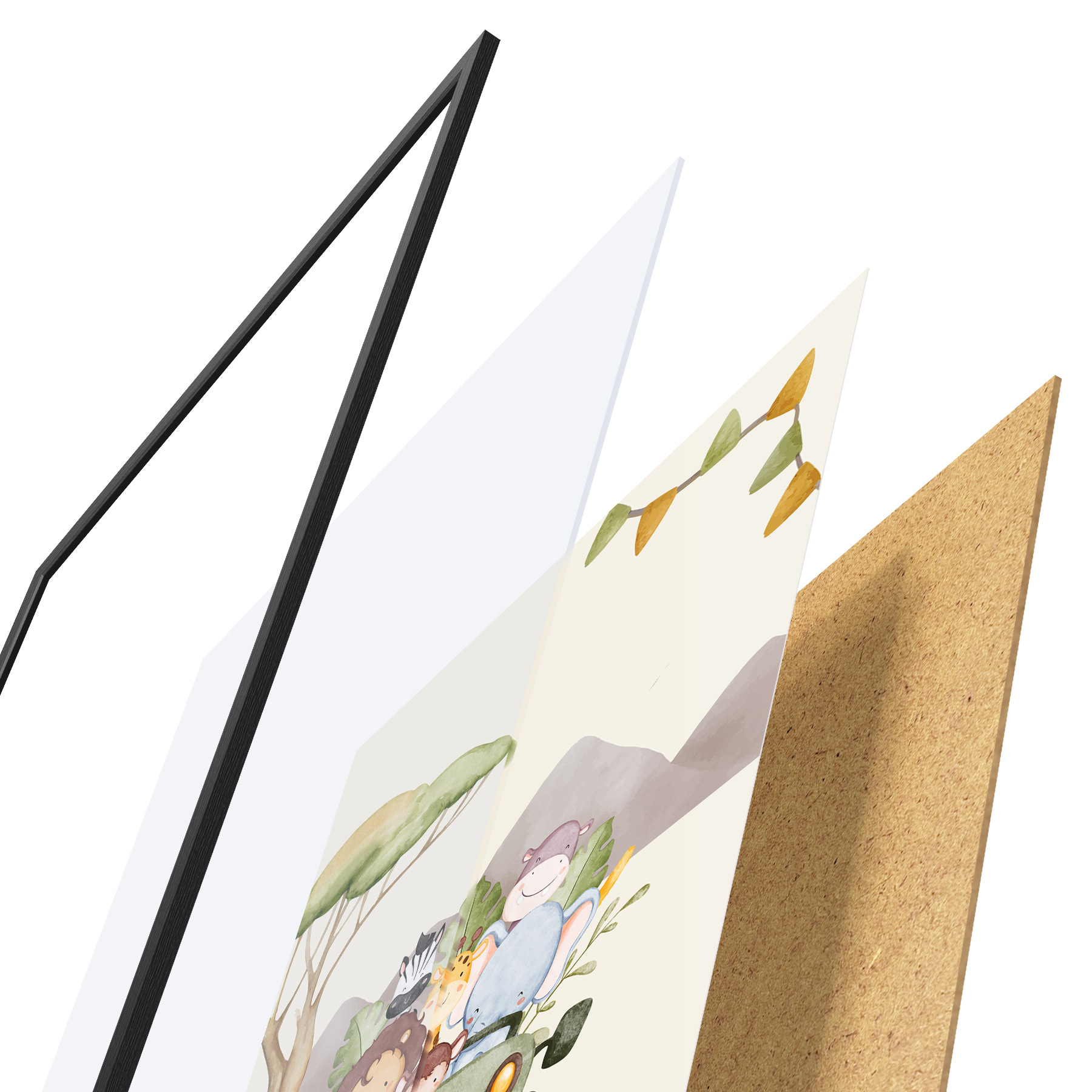 Il poster è composto da cornice, plexiglass, immagine stampata e supporto in truciolato. Il poster può essere immediatamente appeso alla parete grazie ai supporti sul retro.