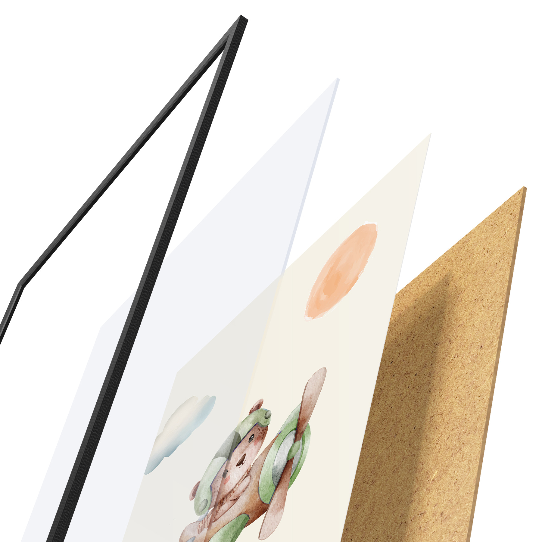 Il poster è composto da cornice, plexiglass, immagine stampata e supporto in truciolato. Il poster può essere immediatamente appeso alla parete grazie ai supporti sul retro.