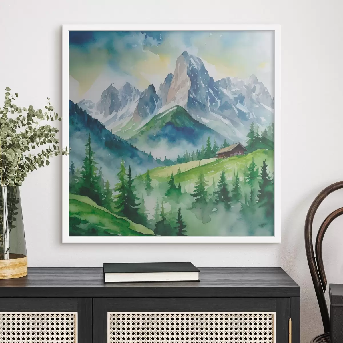 Poster Montagne serene con alberi verdeggianti Nr f37959