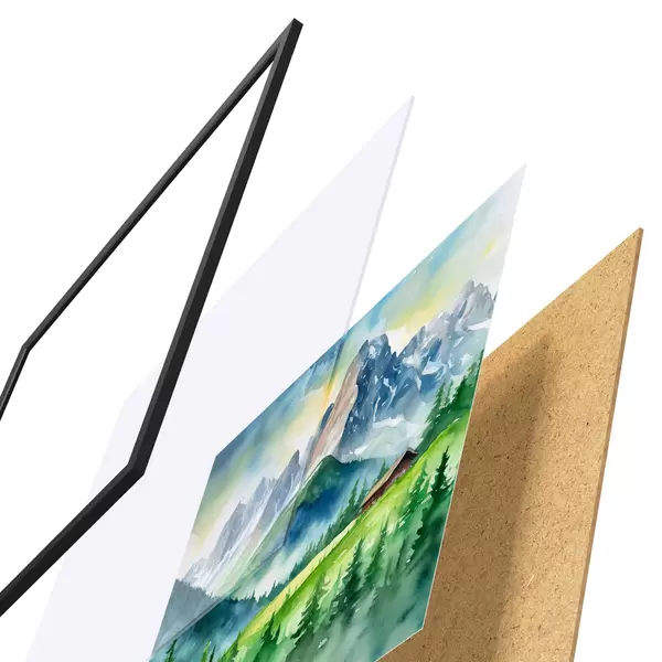 Il poster è composto da cornice, plexiglass, immagine stampata e supporto in truciolato. Il poster può essere immediatamente appeso alla parete grazie ai supporti sul retro.