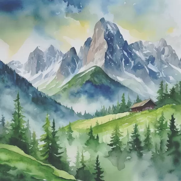 Poster Montagne serene con alberi verdeggianti Nr f37959