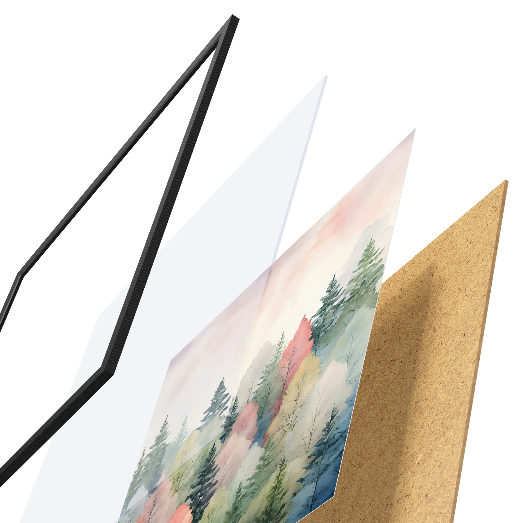 Il poster è composto da cornice, plexiglass, immagine stampata e supporto in truciolato. Il poster può essere immediatamente appeso alla parete grazie ai supporti sul retro.