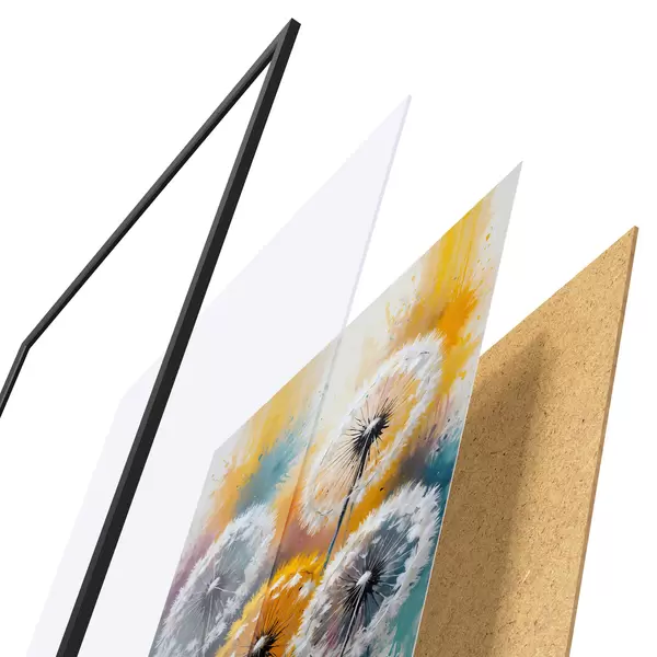 Il poster è composto da cornice, plexiglass, immagine stampata e supporto in truciolato. Il poster può essere immediatamente appeso alla parete grazie ai supporti sul retro.