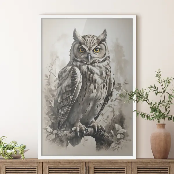Poster Gufo su sfondo bianco e nero Nr f38118