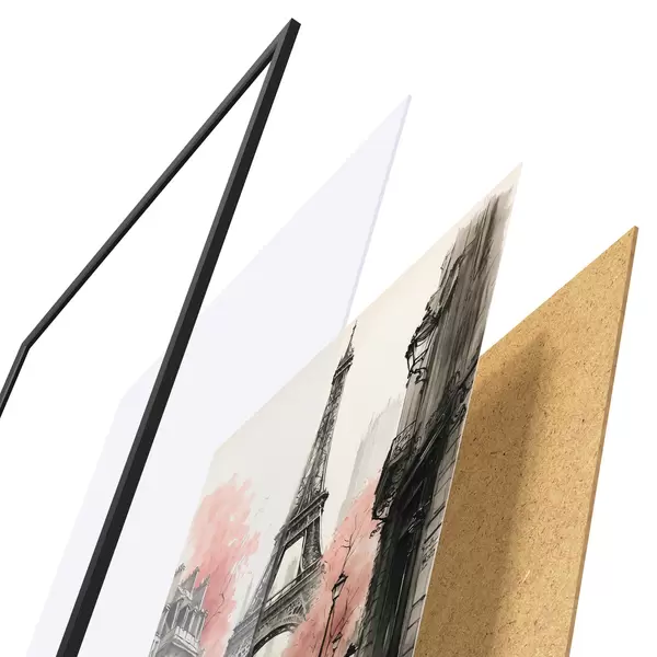 Il poster è composto da cornice, plexiglass, immagine stampata e supporto in truciolato. Il poster può essere immediatamente appeso alla parete grazie ai supporti sul retro.