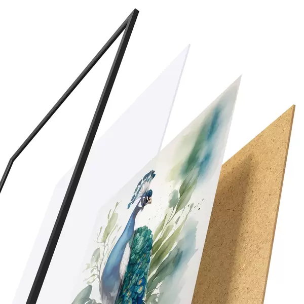 Il poster è composto da cornice, plexiglass, immagine stampata e supporto in truciolato. Il poster può essere immediatamente appeso alla parete grazie ai supporti sul retro.