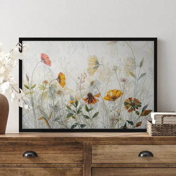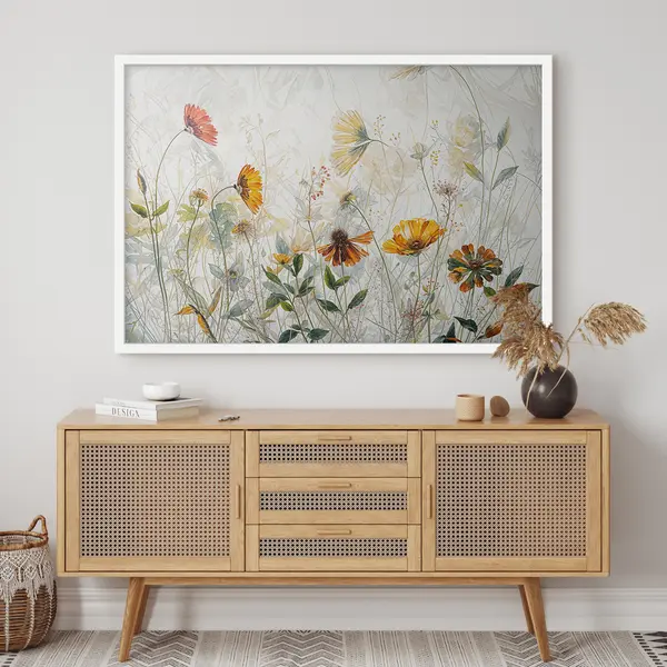 Poster Fiori delicati del campo sulla pittura a olio del fondo bianco Nr f38197
