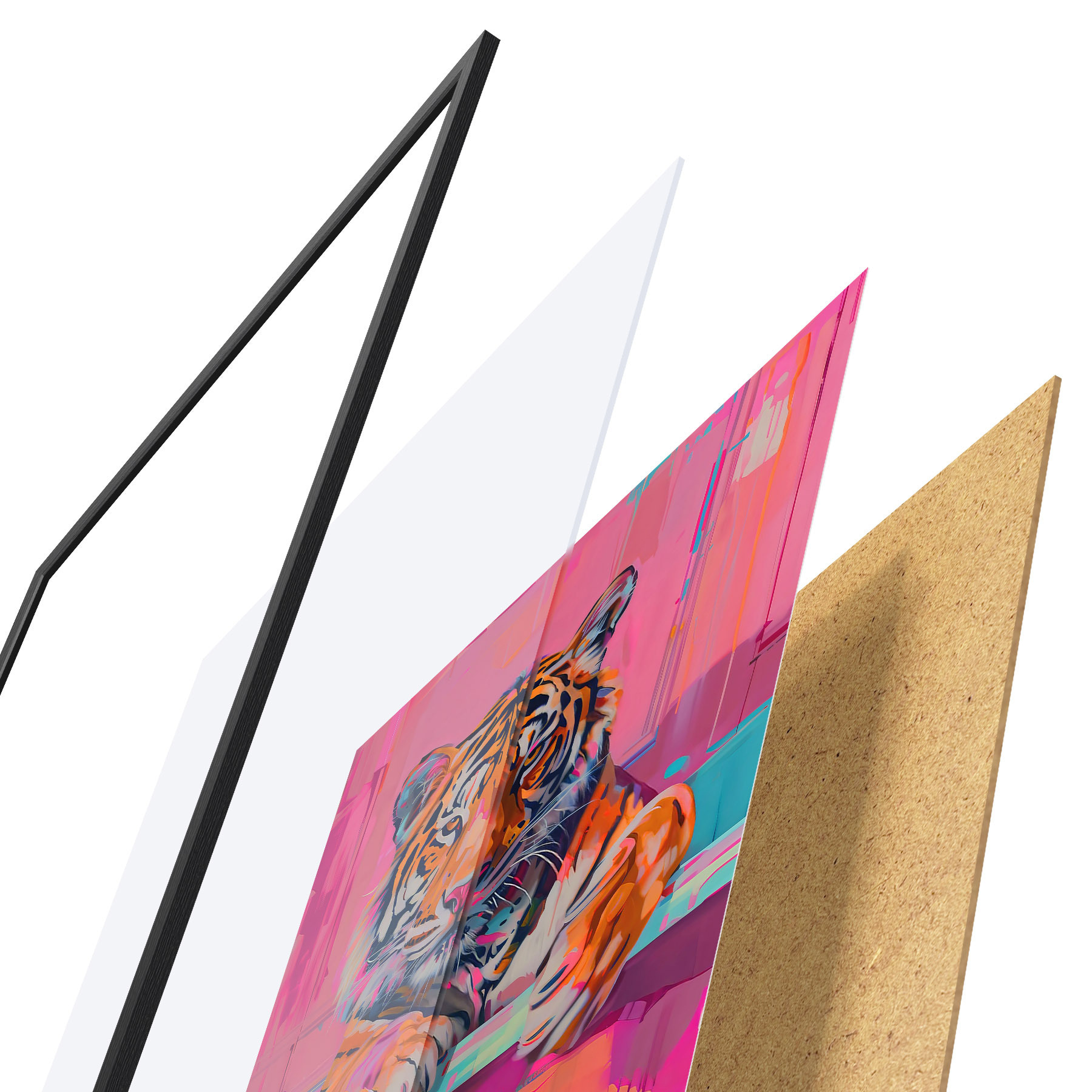 Il poster è composto da cornice, plexiglass, immagine stampata e supporto in truciolato. Il poster può essere immediatamente appeso alla parete grazie ai supporti sul retro.