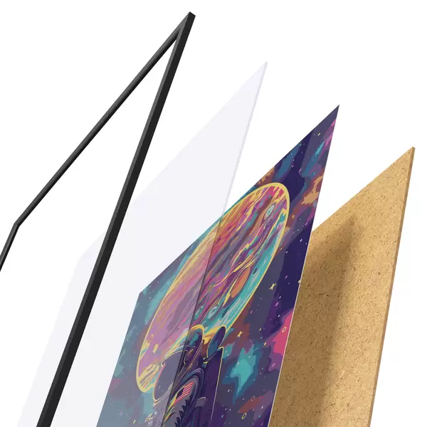 Il poster è composto da cornice, plexiglass, immagine stampata e supporto in truciolato. Il poster può essere immediatamente appeso alla parete grazie ai supporti sul retro.