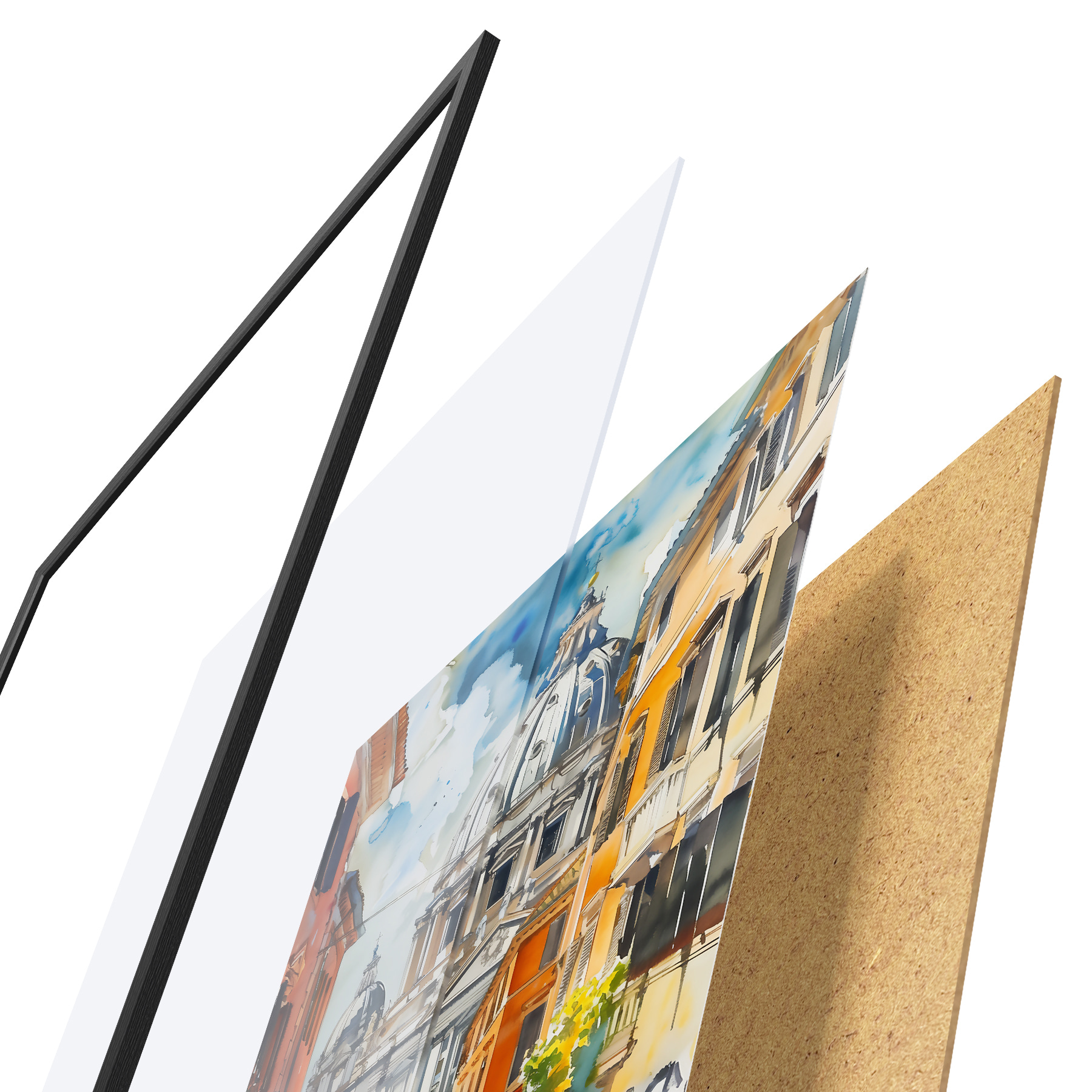 Il poster è composto da cornice, plexiglass, immagine stampata e supporto in truciolato. Il poster può essere immediatamente appeso alla parete grazie ai supporti sul retro.