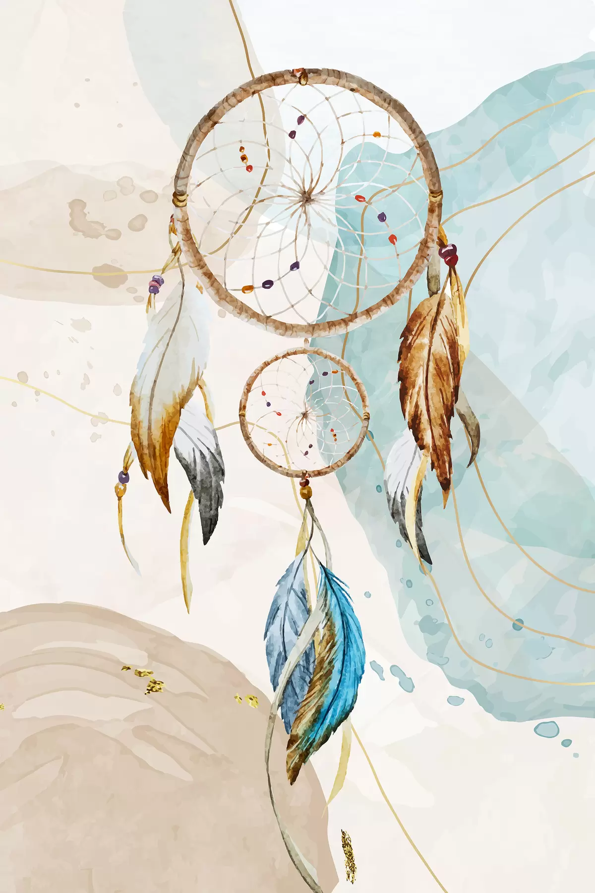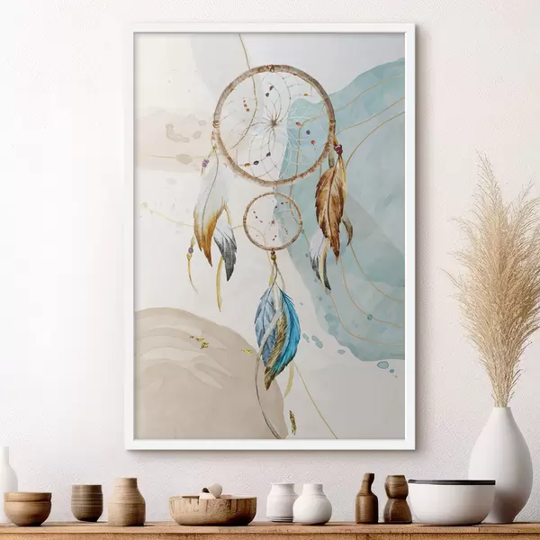 Poster acquerello, acchiappasogni, piume, pastello f38330