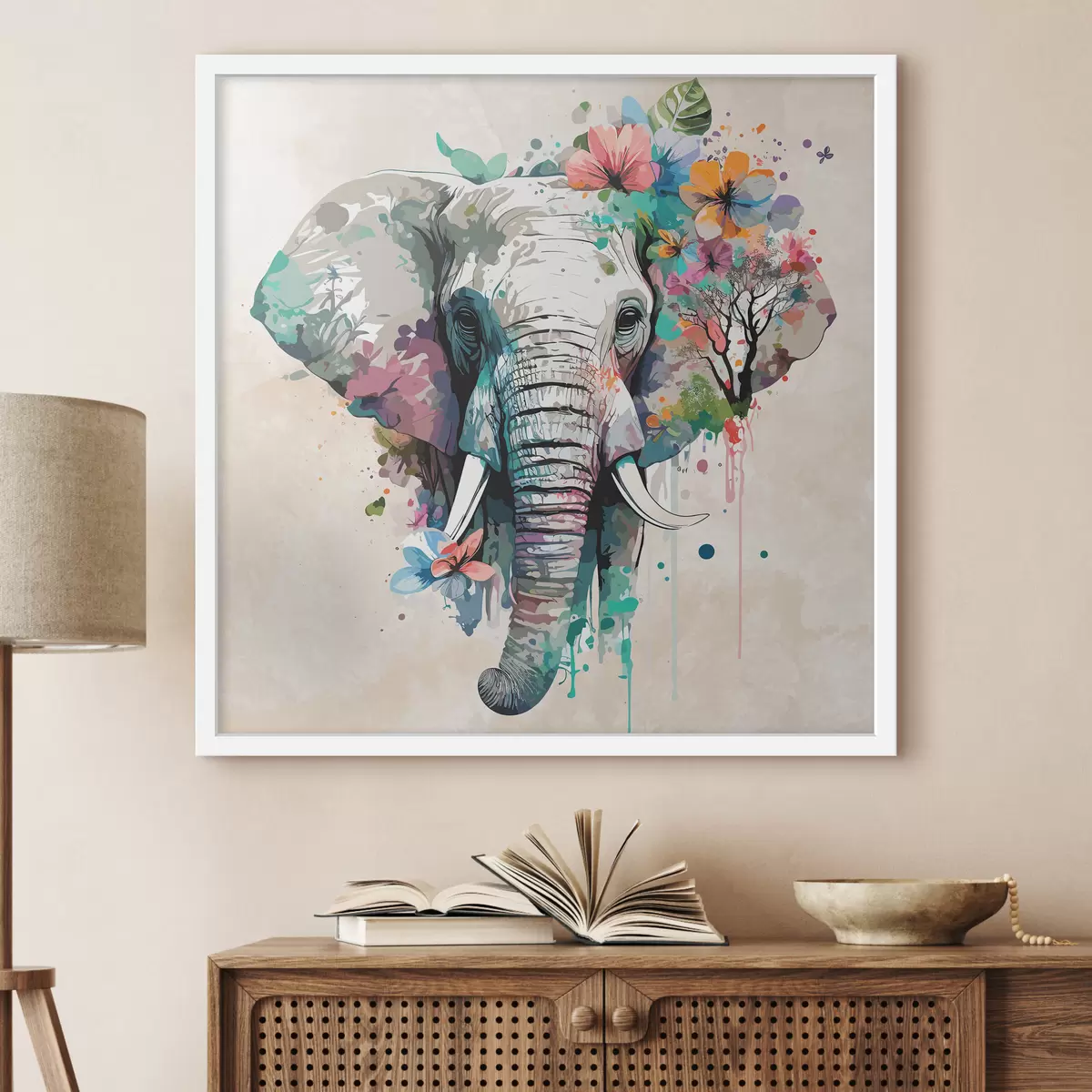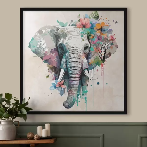 Poster elefante in fiori, macchie di vernice Nr f38333