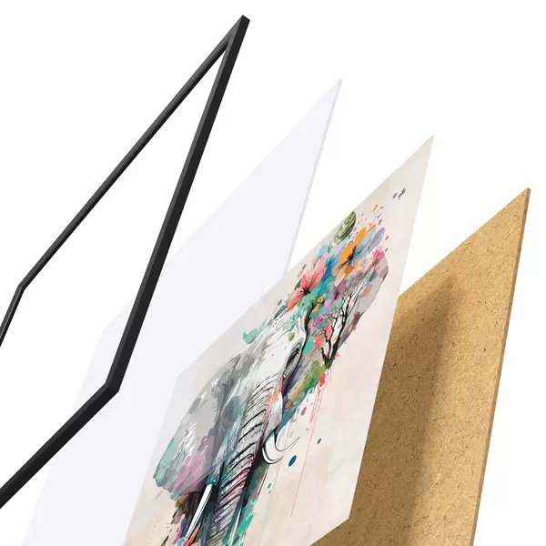 Il poster è composto da cornice, plexiglass, immagine stampata e supporto in truciolato. Il poster può essere immediatamente appeso alla parete grazie ai supporti sul retro.