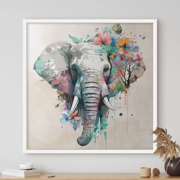 Poster elefante in fiori, macchie di vernice Nr f38333