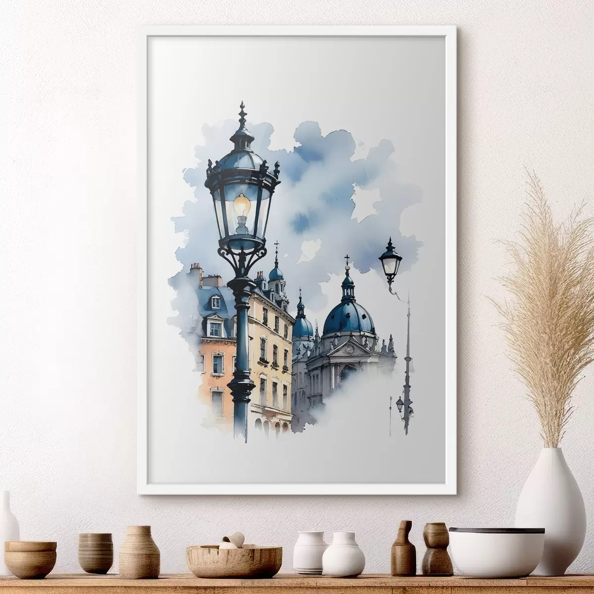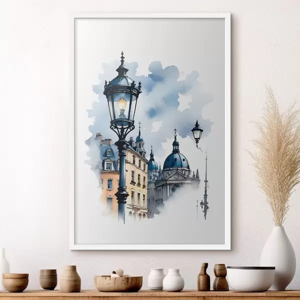 Poster Un lampione ornato con un edificio a forma di cupola in una giornata nuvolosa Nr f38364