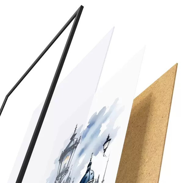 Il poster è composto da cornice, plexiglass, immagine stampata e supporto in truciolato. Il poster può essere immediatamente appeso alla parete grazie ai supporti sul retro.