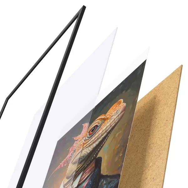 Il poster è composto da cornice, plexiglass, immagine stampata e supporto in truciolato. Il poster può essere immediatamente appeso alla parete grazie ai supporti sul retro.