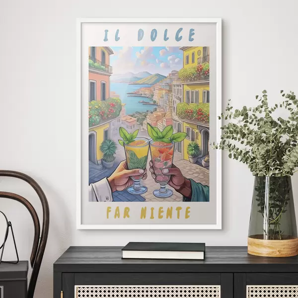 Poster Città italiana, costa del mare, cocktail, vocazione, architettura, estate, acquerello Nr f38392