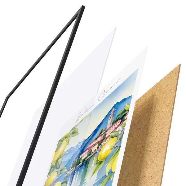 Il poster è composto da cornice, plexiglass, immagine stampata e supporto in truciolato. Il poster può essere immediatamente appeso alla parete grazie ai supporti sul retro.