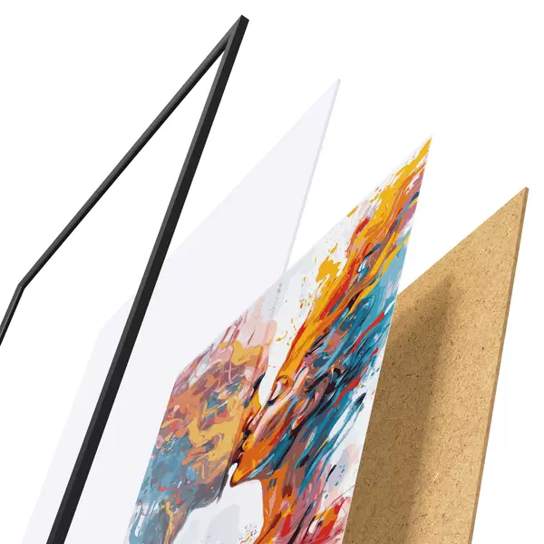 Il poster è composto da cornice, plexiglass, immagine stampata e supporto in truciolato. Il poster può essere immediatamente appeso alla parete grazie ai supporti sul retro.