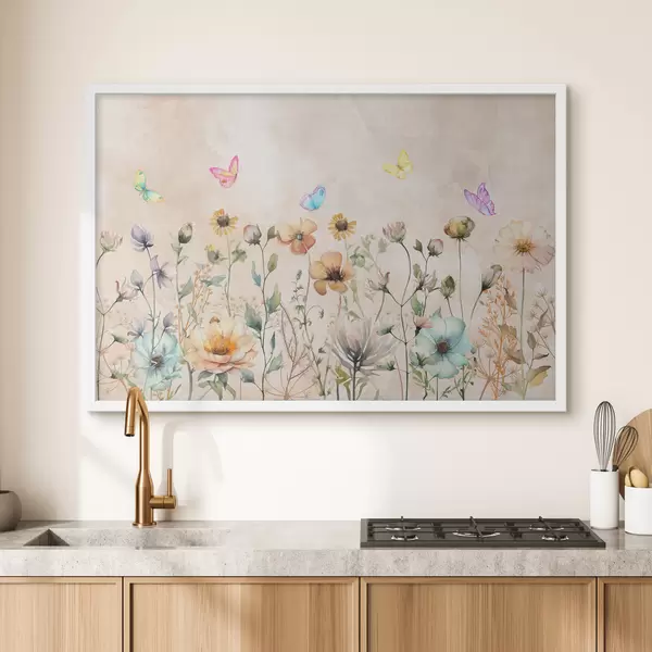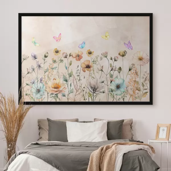 Poster fiori di campo con acquerelli, farfalle luminose, pastelli Nr f38441