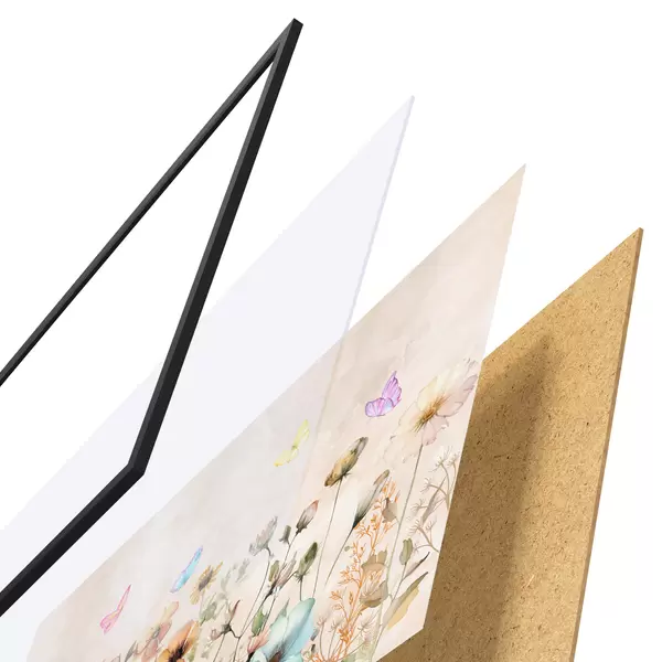 Il poster è composto da cornice, plexiglass, immagine stampata e supporto in truciolato. Il poster può essere immediatamente appeso alla parete grazie ai supporti sul retro.