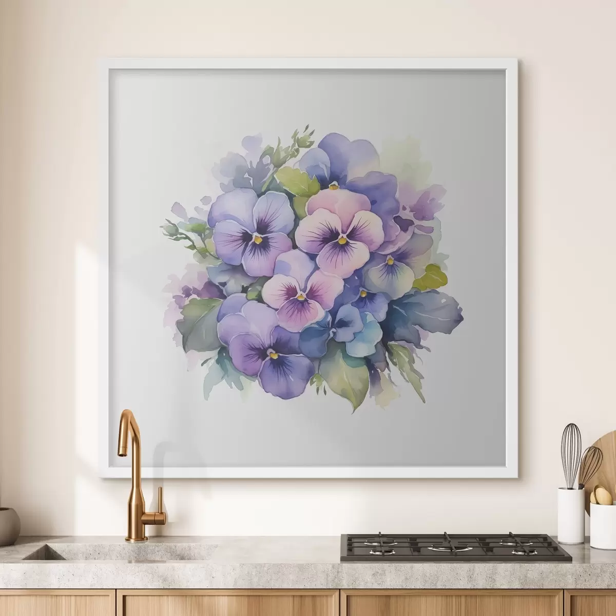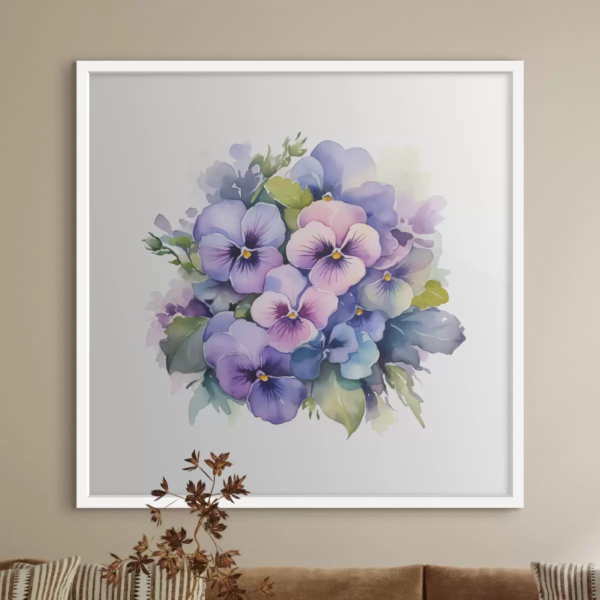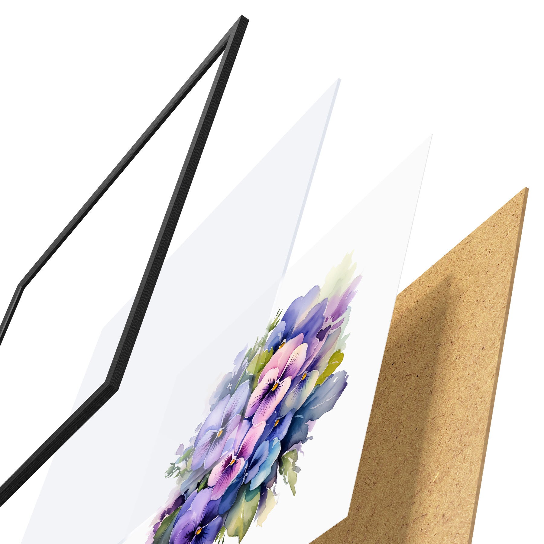 Poster Illustrazione dell'acquerello delle viole, bouquet, fiori, colore blu, viola, verde Nr f38486