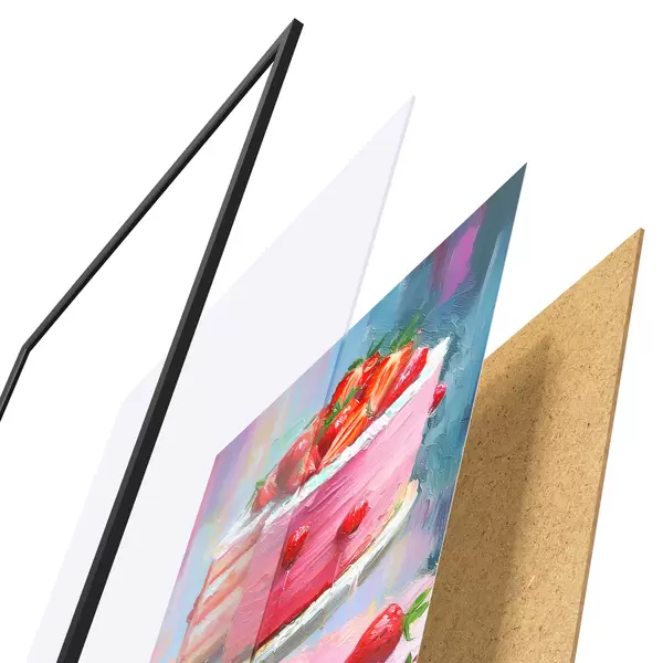 Il poster è composto da cornice, plexiglass, immagine stampata e supporto in truciolato. Il poster può essere immediatamente appeso alla parete grazie ai supporti sul retro.
