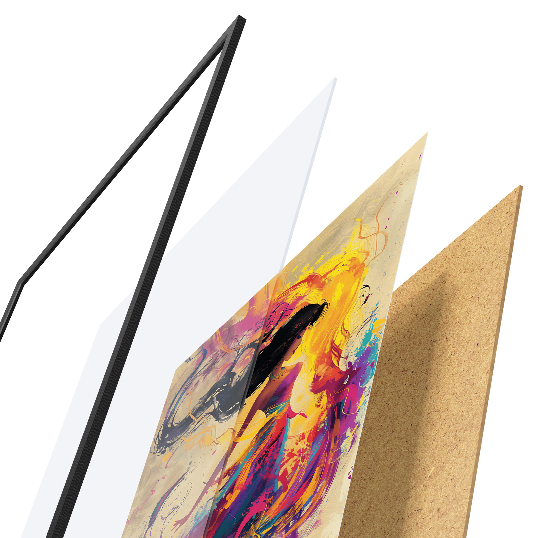 Il poster è composto da cornice, plexiglass, immagine stampata e supporto in truciolato. Il poster può essere immediatamente appeso alla parete grazie ai supporti sul retro.