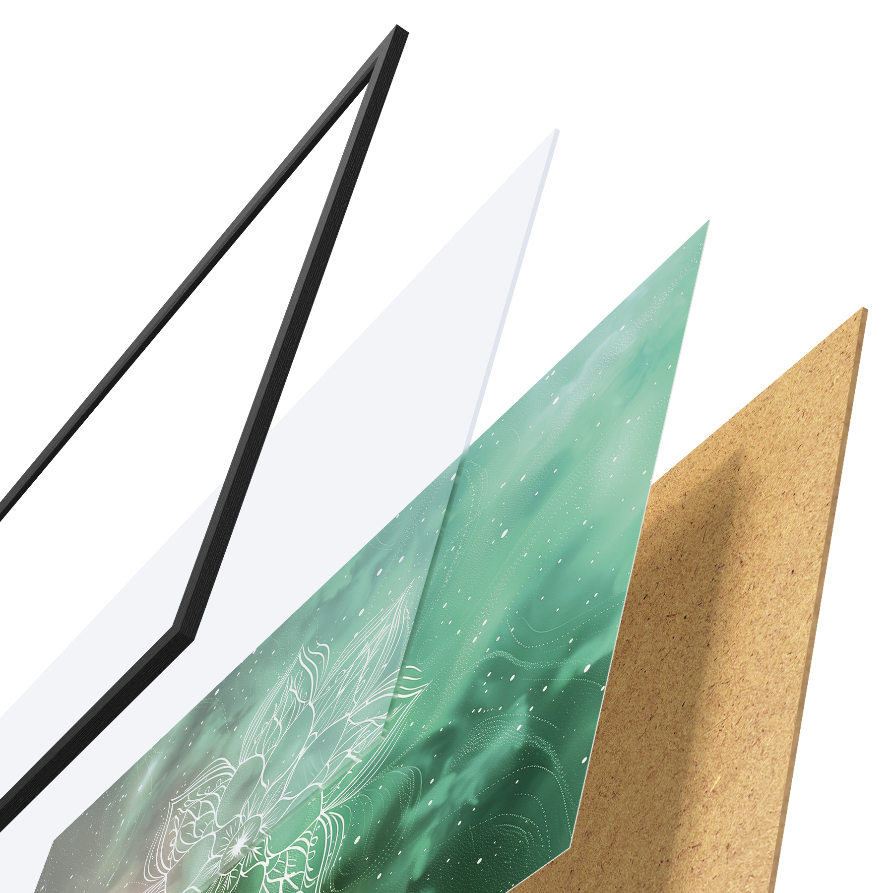 Il poster è composto da cornice, plexiglass, immagine stampata e supporto in truciolato. Il poster può essere immediatamente appeso alla parete grazie ai supporti sul retro.