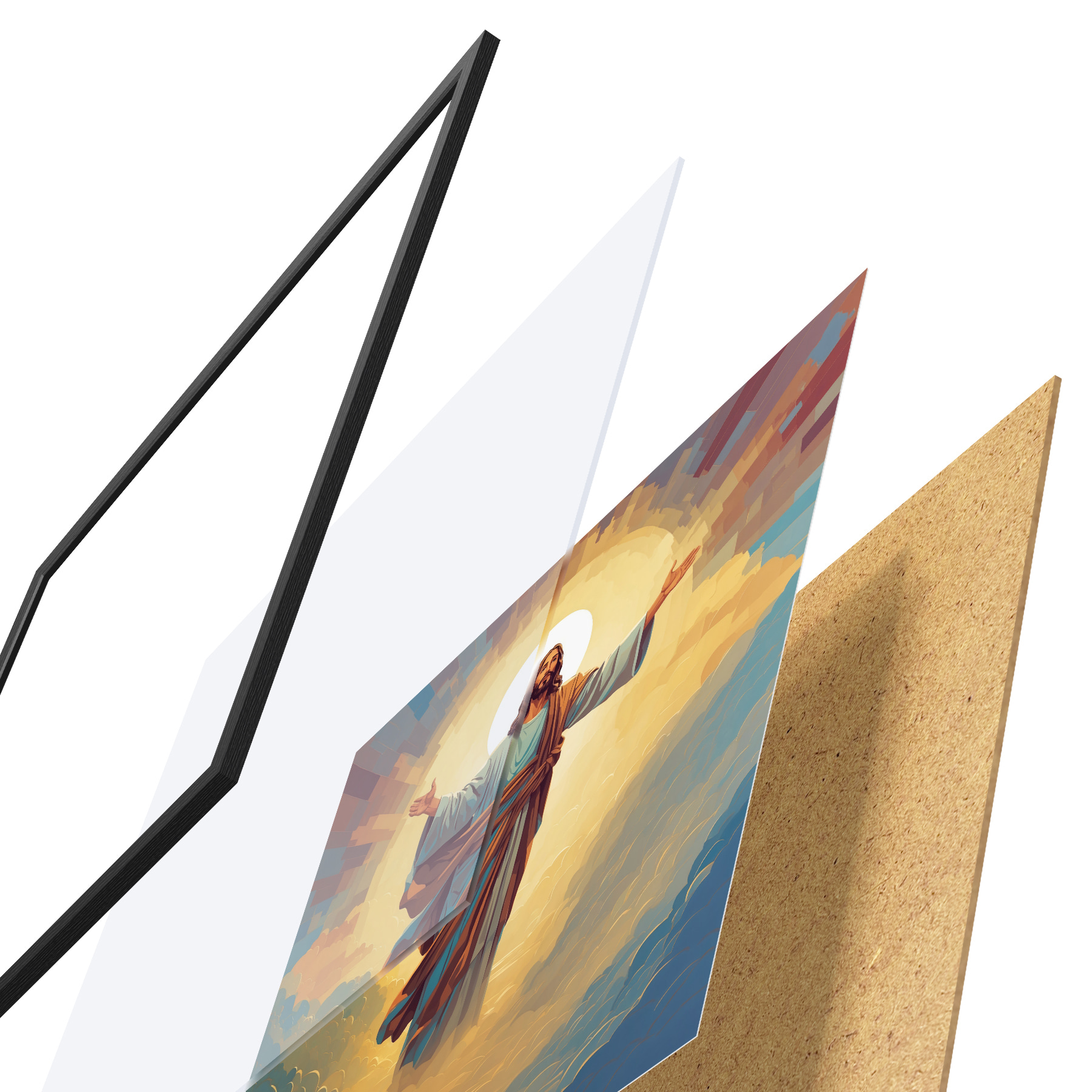 Il poster è composto da cornice, plexiglass, immagine stampata e supporto in truciolato. Il poster può essere immediatamente appeso alla parete grazie ai supporti sul retro.
