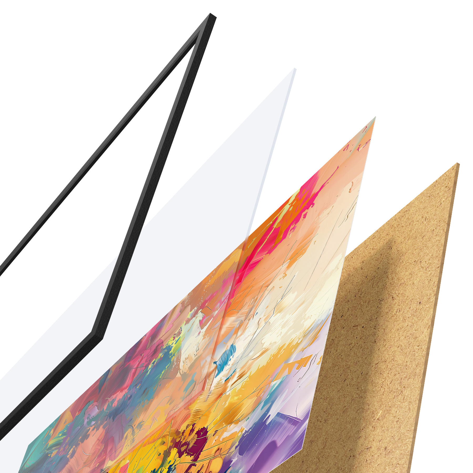 Il poster è composto da cornice, plexiglass, immagine stampata e supporto in truciolato. Il poster può essere immediatamente appeso alla parete grazie ai supporti sul retro.