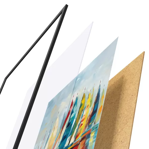Il poster è composto da cornice, plexiglass, immagine stampata e supporto in truciolato. Il poster può essere immediatamente appeso alla parete grazie ai supporti sul retro.