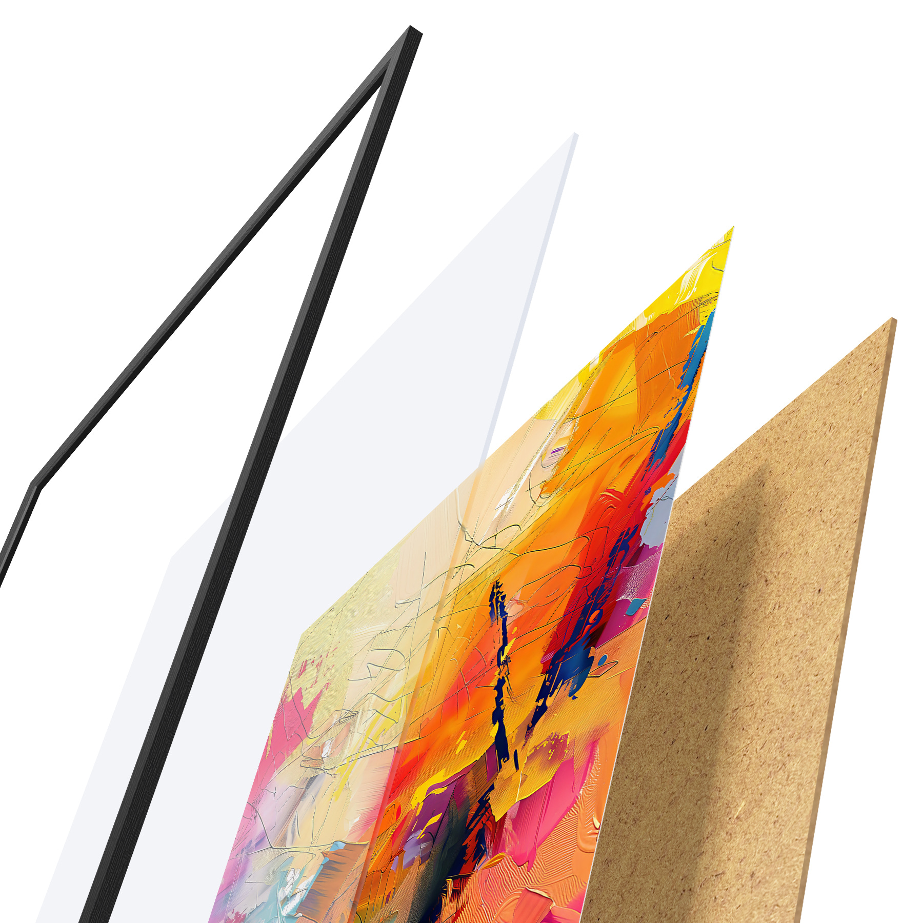 Il poster è composto da cornice, plexiglass, immagine stampata e supporto in truciolato. Il poster può essere immediatamente appeso alla parete grazie ai supporti sul retro.