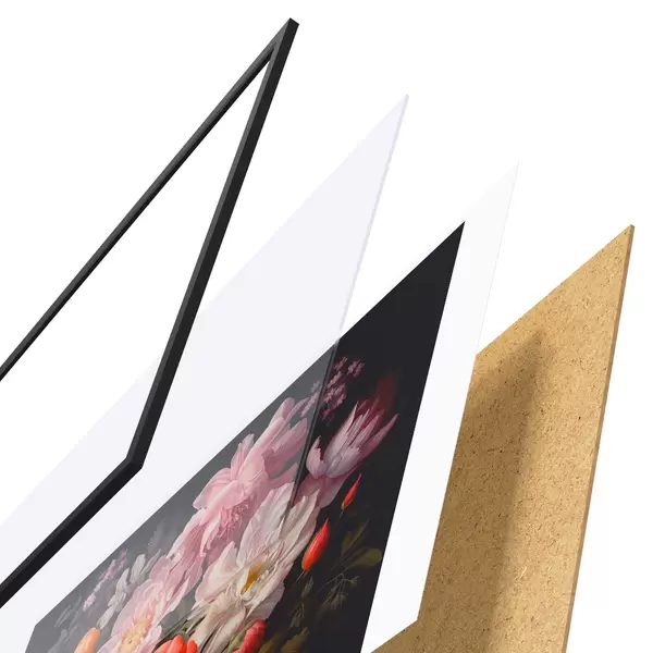 Il poster è composto da cornice, plexiglass, immagine stampata e supporto in truciolato. Il poster può essere immediatamente appeso alla parete grazie ai supporti sul retro.