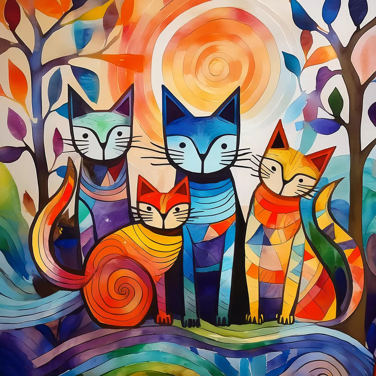 Poster Astrazione multicolore con gatti interessanti Nr f38815