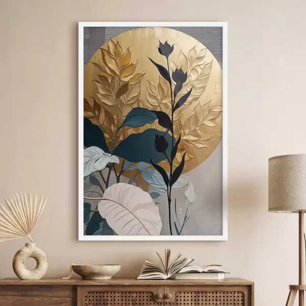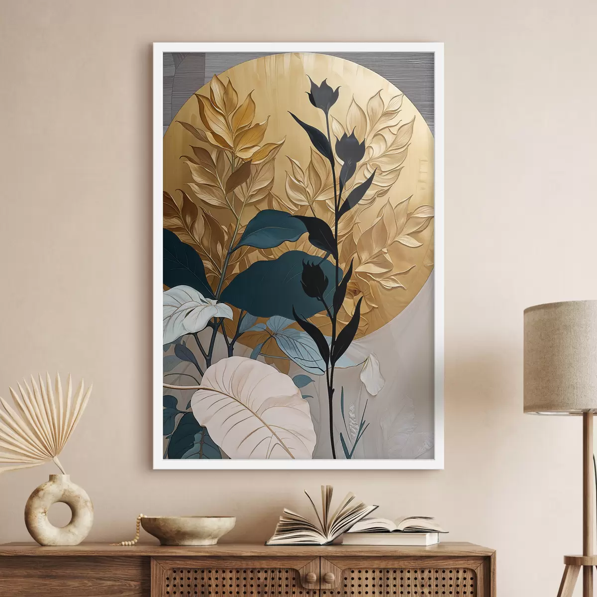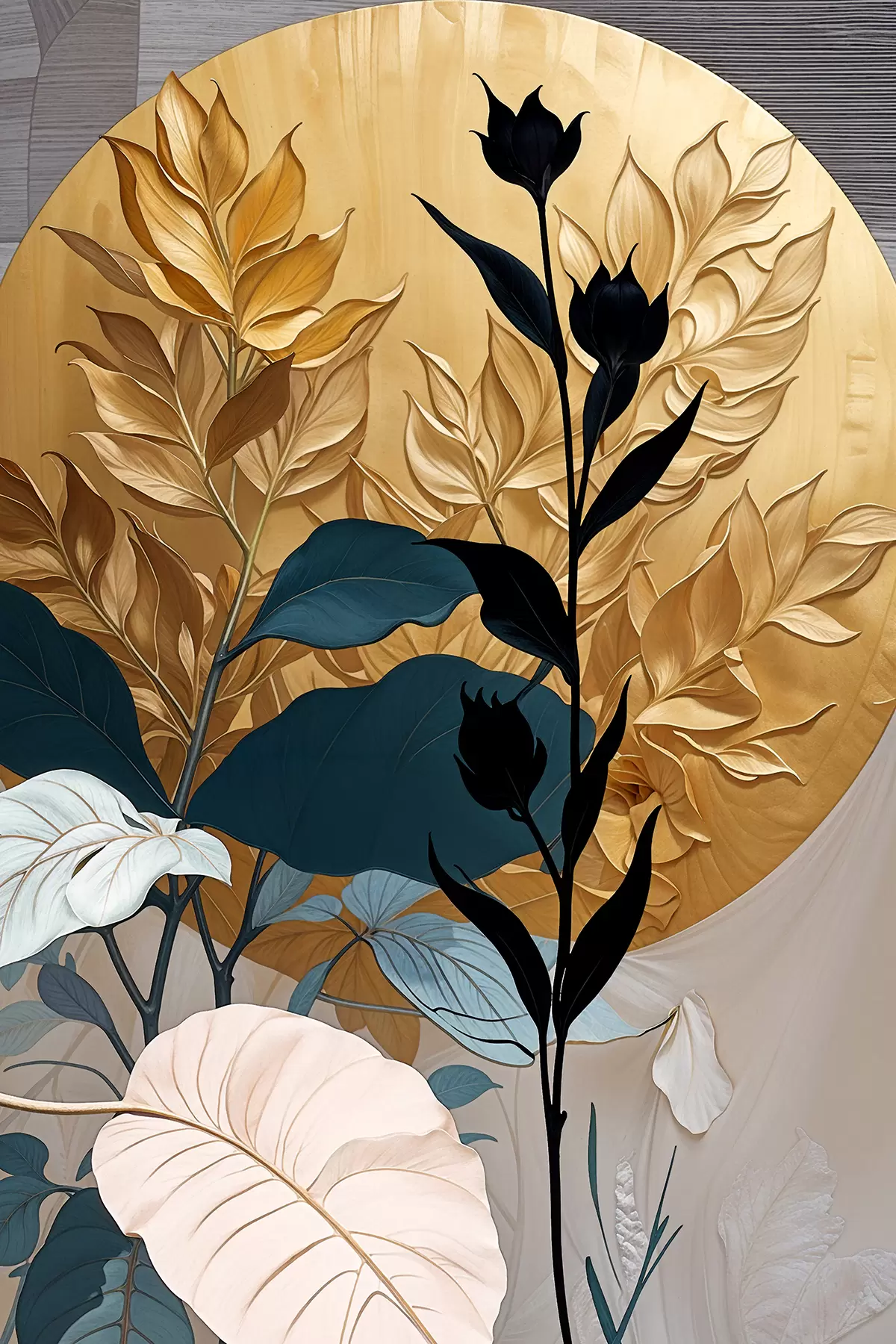 Poster Composizione floreale astratta caratterizzata da grandi foglie e forme scure stagliate Nr f38822