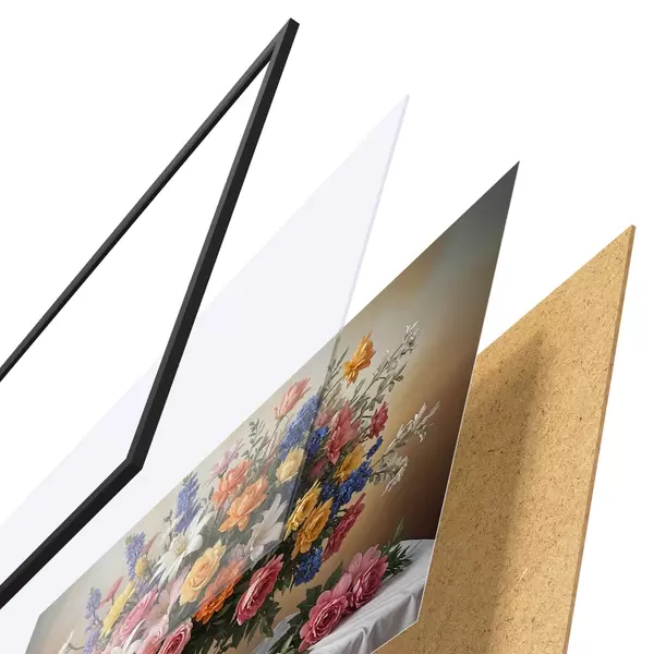 Il poster è composto da cornice, plexiglass, immagine stampata e supporto in truciolato. Il poster può essere immediatamente appeso alla parete grazie ai supporti sul retro.