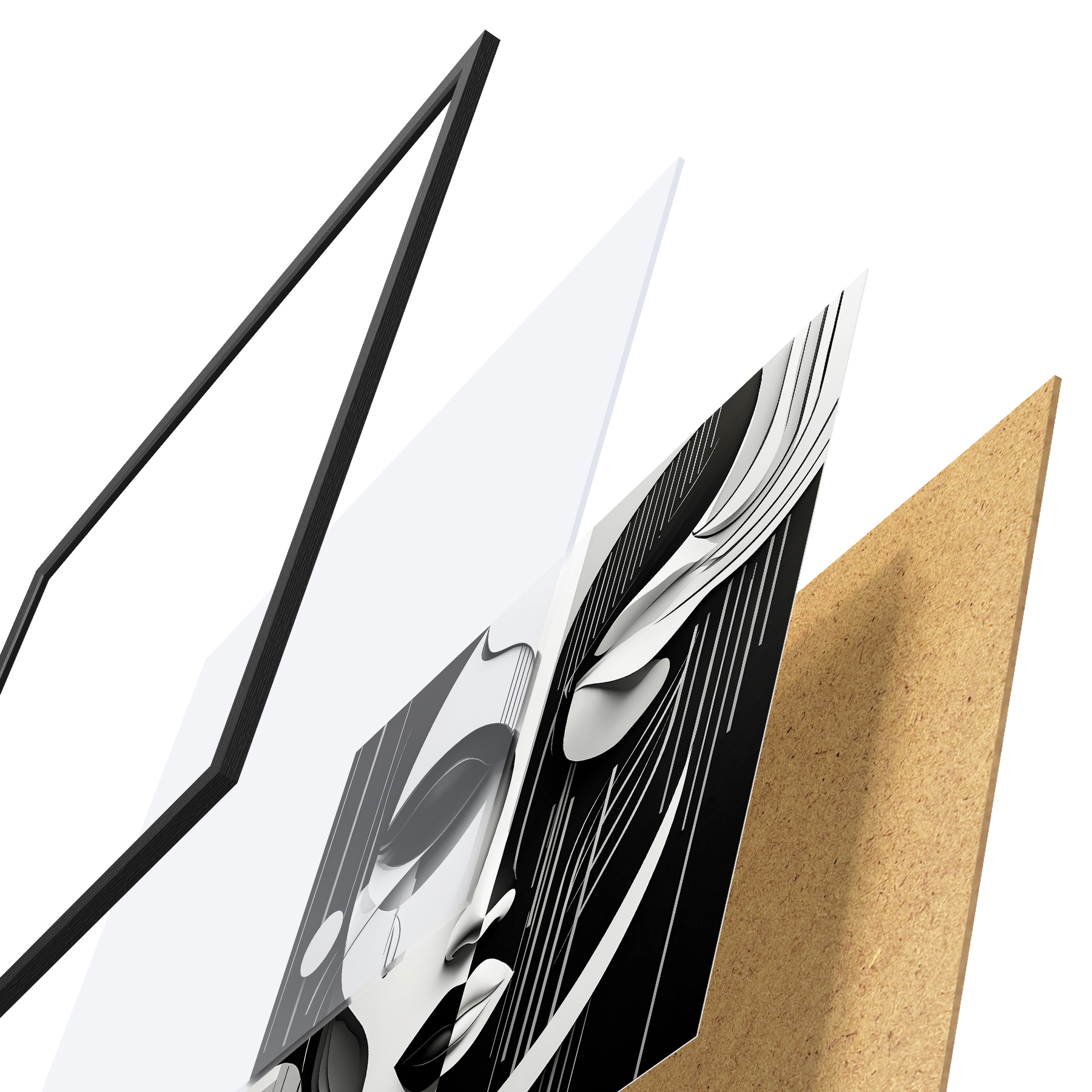 Il poster è composto da cornice, plexiglass, immagine stampata e supporto in truciolato. Il poster può essere immediatamente appeso alla parete grazie ai supporti sul retro.