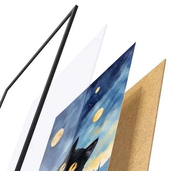 Il poster è composto da cornice, plexiglass, immagine stampata e supporto in truciolato. Il poster può essere immediatamente appeso alla parete grazie ai supporti sul retro.