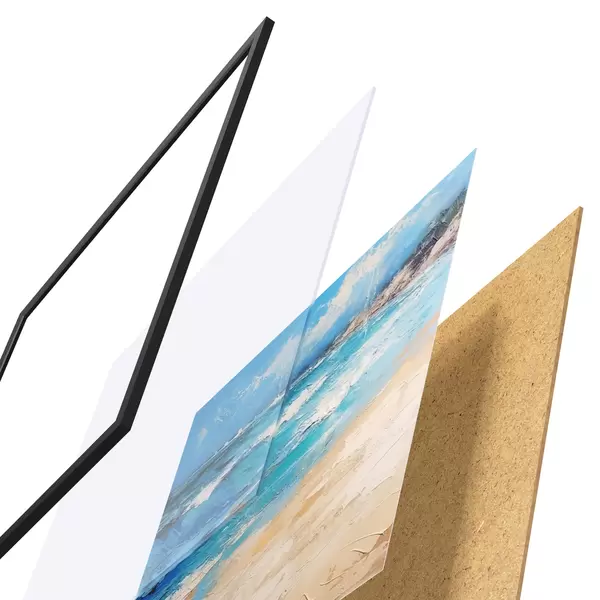 Il poster è composto da cornice, plexiglass, immagine stampata e supporto in truciolato. Il poster può essere immediatamente appeso alla parete grazie ai supporti sul retro.